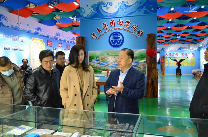 苗強董事長重點介紹了公司在疫情防控背景下藍色海洋經濟發展、海洋生物工程新建項目,水產品出口加工以及食品安全管理等情況。并陪同考察了宇王海洋生物館。市領導對宇王集團多年來節日水產品市場供給保障工作和食品安全保障工作給予高度評價。